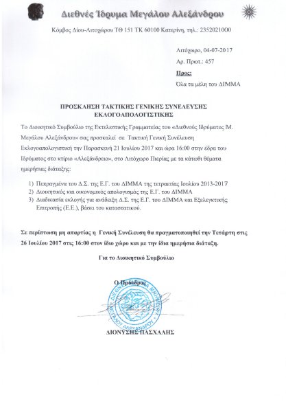 ΠΡΟΣΚΛΗΣΗ ΤΑΚΤΙΚΗΣ ΓΕΝΙΚΗΣ ΣΥΝΕΛΕΥΣΗΣ ΑΠΟ ΤΟ ΔΙΕΘΝΕΣ ΙΔΡΥΜΑ ΜΕΓΑΛΟΥ ΑΛΕΞΑΝΔΡΟΥ.