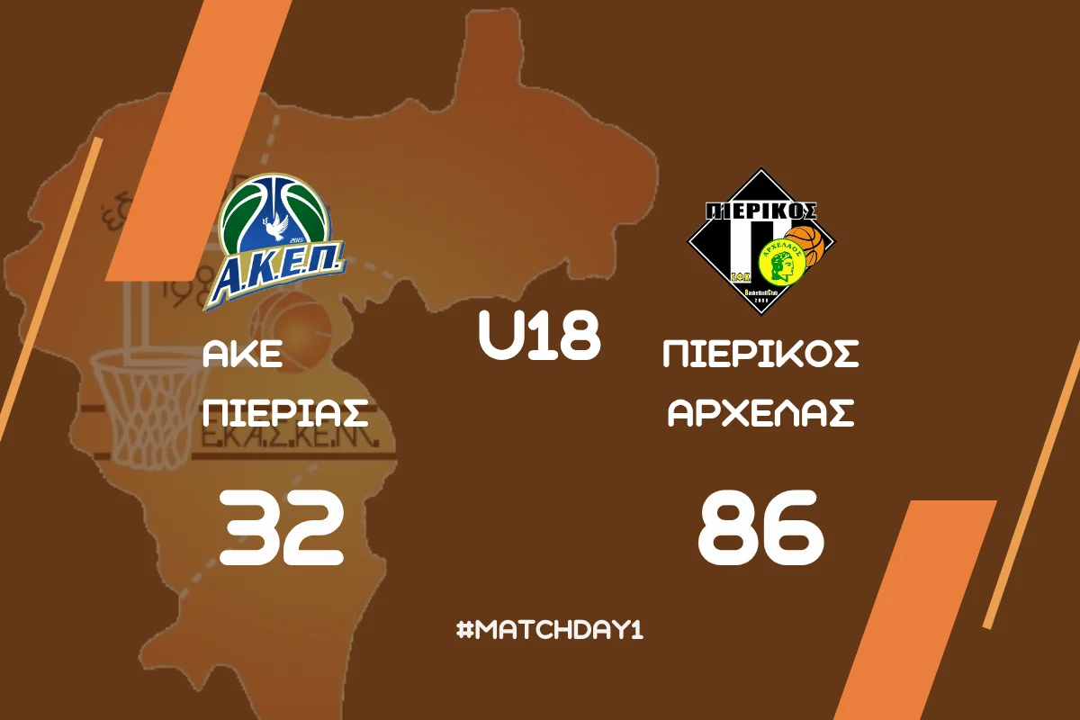 Ο Πιερικός Αρχέλαος επικράτησε με 32-86 της ΑΚΕ Πιερίας, στο Β’ Δημοτικό Αθλητικό Κέντρο Κατερίνης, σε αγώνα για την 1η αγωνιστική του Α’ ομίλου του πρωταθλήματος Εφήβων της ΕΚΑΣΚΕΜ.
