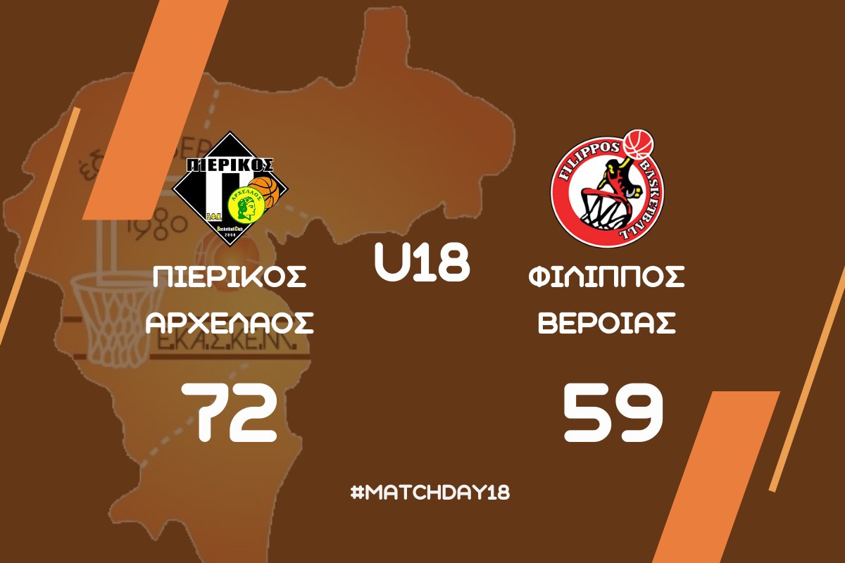 Ο Πιερικός Αρχέλαος επικράτησε με 72-59 του Φίλιππου Βέροιας, στο Κλειστό Γυμναστήριο Σιδηροδρομικού Σταθμού Κατερίνης, σε αγώνα για την 8η και τελευταία αγωνιστική του α’ ομίλου της β’ φάσης του πρωταθλήματος εφήβων της ΕΚΑΣΚΕΜ.