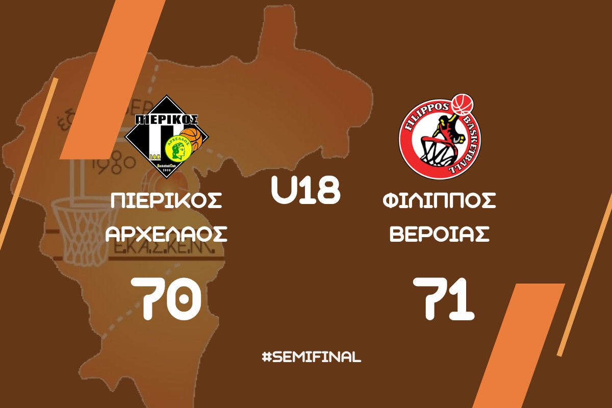 Ο Πιερικός Αρχέλαος ηττήθηκε με 71-70 από το Φίλιππο Βέροιας, στο Δημοτικό Αθλητικό Κέντρο Κολινδρού, στον ημιτελικό του Final Four του πρωταθλήματος εφήβων της ΕΚΑΣΚΕΜ.
