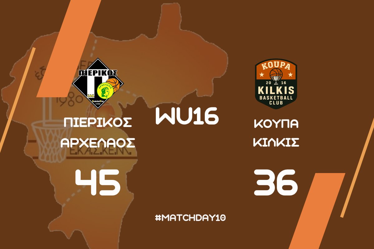 Ο Πιερικός Αρχέλαος επικράτησε με 45-36 της ΚουΠα Κιλκίς, στο Κλειστό Γυμναστήριο Σιδηροδρομικού Σταθμού Κατερίνης, σε αγώνα για τη 10η αγωνιστική του πρωταθλήματος κορασίδων της ΕΚΑΣΚΕΜ.
