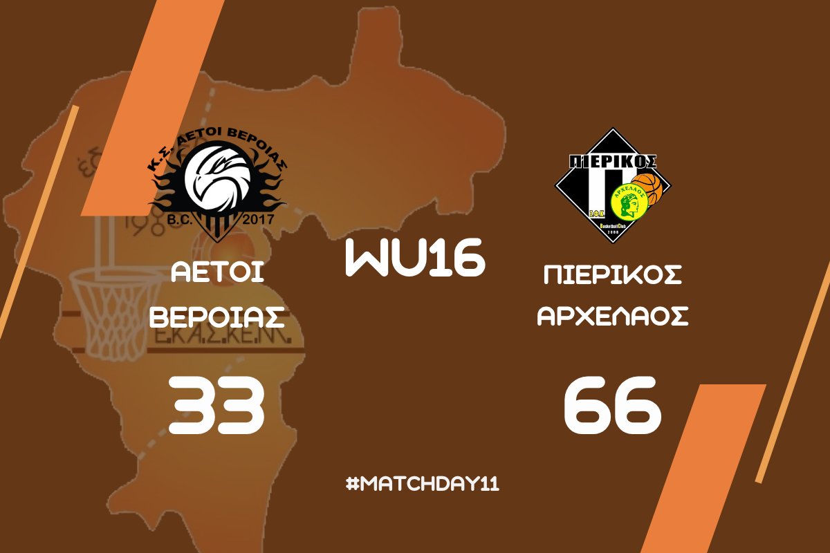 Ο Πιερικός Αρχέλαος επικράτησε με 33-66 των Αετών Βέροιας, στο Δημοτικό Γυμναστήριο Μακροχωρίου “Δημήτριος Βικέλας”, σε αγώνα για την 11η αγωνιστική του πρωταθλήματος κορασίδων της ΕΚΑΣΚΕΜ.
