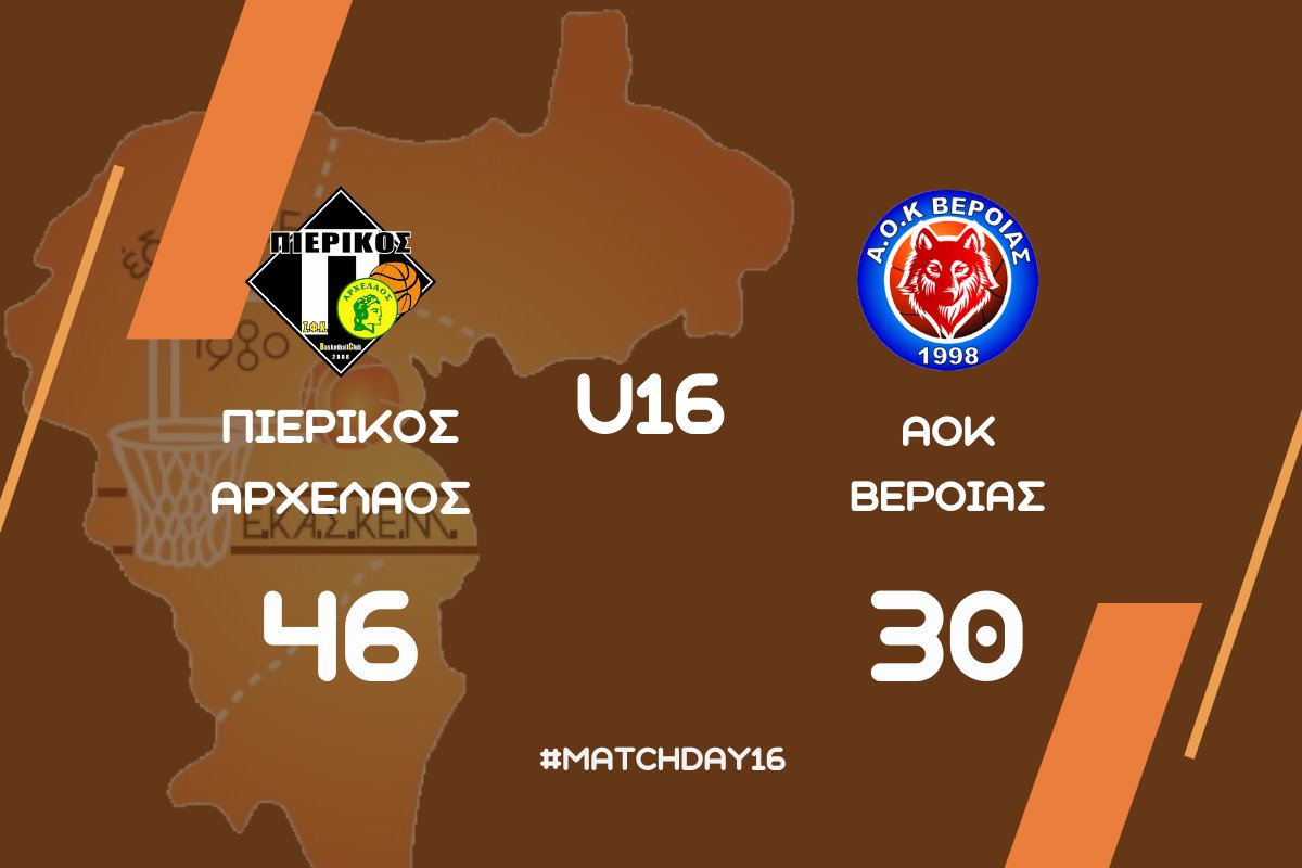 Ο Πιερικός Αρχέλαος επικράτησε με 46-30 του ΑΟΚ Βέροιας, στο Κλειστό Γυμναστήριο Σιδηροδρομικού Σταθμού Κατερίνης, σε αγώνα για τη 2η αγωνιστική του α’ ομίλου της β’ φάσης του πρωταθλήματος παίδων της ΕΚΑΣΚΕΜ.