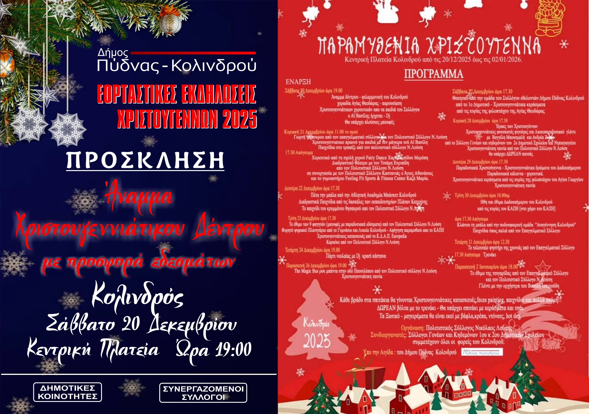 Προσκληση για το Αναμμα του Χριστουγεννιατικου δεντρου στο Κολινδρο…