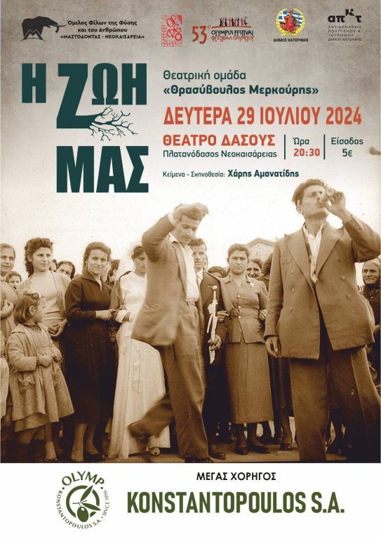 «Η ΖΩΗ ΜΑΣ» απο τη Θεατρικη Ομαδα «Θρασυβουλος Μερκουρης» του Ομιλου Φιλων της Φυσης & του Ανθρωπου «ΜΑΣΤΟΔΟΝΤΑΣ – ΝΕΟΚΑΙΣΑΡΕΙΑ»- Σημερα στο Θεατρο Δασους – Πλατανοδασος Νεοκαισαρειας