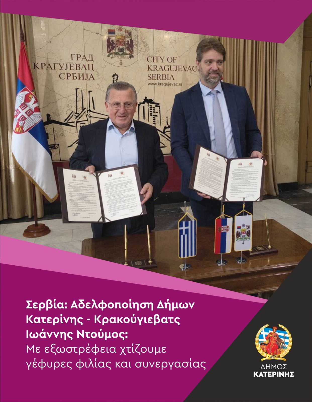 Σερβία: Αδελφοποίηση Δήμων Κατερίνης - Κρακούγιεβατς