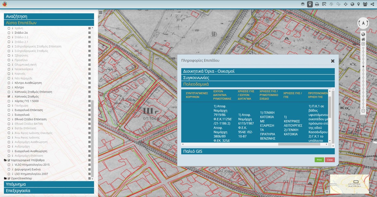 Σημαντικές πληροφορίες έχουν στη διάθεσή τους με ένα «κλικ», οι πολίτες και οι επαγγελματίες της Κατερίνης, καθώς η πρόσβαση στα «Ανοικτά» Γεωχωρικά (GIS) είναι πλέον γεγονός. Μία ιδιαίτερα θετική εξέλιξη που αφορά στην παροχή εξειδικευμένων υπηρεσιών, με στόχο τη βέλτιστη δικτύωση με Υπηρεσίες και Οργανισμούς που αλληλοεπιδρούν με το Γεωγραφικό Σύστημα Πληροφοριών (GIS) του Δήμου Κατερίνης.