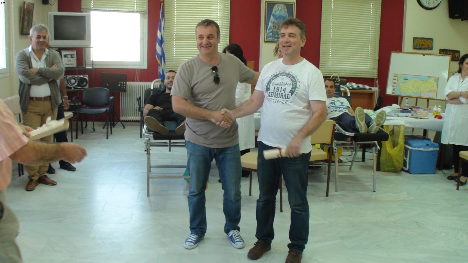 Θέλοντας να συγχαρεί τους Αιμοδότες της για το δυναμικό παρόν τους, έδωσε έπαινο στους παλαιότερους από αυτούς, αναγνωρίζοντας την σημαντική προσφορά τους. Τιμήθηκαν οι: 1. Μαυρίδης Βασίλειος, 2. Μπράτσιος Σωτήριος, 3. Πουζουκλίδης Αναστάσιος