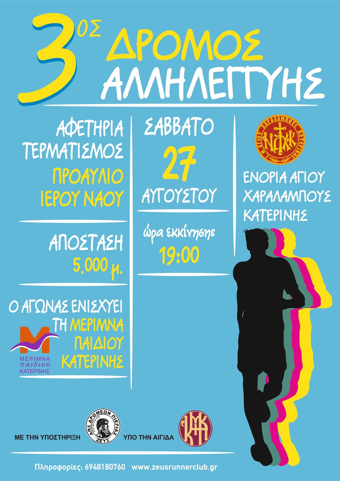Η Iερά Μητρόπολη Κίτρους Κατερίνης και η Ενορία Αγίου Χαραλάμπους Κατερίνης σε συνεργασία με την Μέριμνα Παιδιού Κατερίνης συνδιοργανώνουν τον 3ο Δρόμο Αλληλεγγύης 5000μ. ο οποίος υποστηρίζεται από τον Αθλητικό Πολιτιστικό Σύλλογο Δρομέων Πιερίας «ΖΕΥΣ».