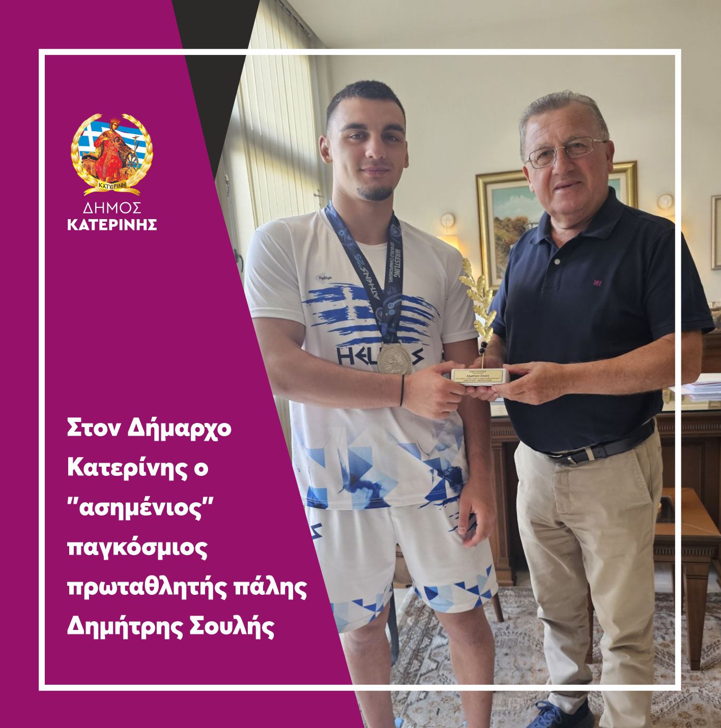 Στον Δήμαρχο Κατερίνης ο “ασημένιος” παγκόσμιος πρωταθλητής πάλης Δημήτρης Σουλής
