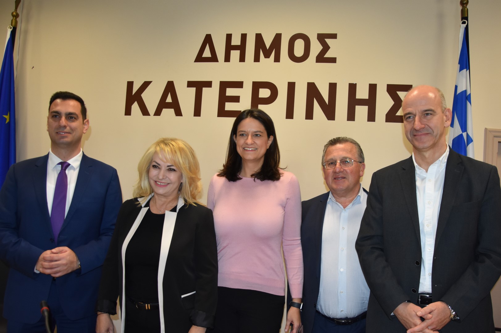 Το Δημαρχείο Κατερίνης επισκέφτηκε σήμερα Παρασκευή 12/01, στο πλαίσιο περιοδείας της στην Πιερία, η Υπουργός Εσωτερικών, Νίκη Κεραμέως, όπου μέσα σε εγκάρδιο κλίμα συναντήθηκε με τον Δήμαρχο, Ιωάννη Ντούμο. Στην επίσκεψη, παρέστησαν επίσης: η Υφυπουργός Ανάπτυξης, Άννα – Μάνη Παπαδημητρίου, οι Βουλευτές Πιερίας, Ξενοφών Μπαραλιάκος, Σπυρίδων Κουλκουδίνας, ο πρόεδρος της ΔΕΕΠ Πιερίας, Χαράλαμπος Μπρουσκέλης, ο πρόεδρος του Δημοτικού Συμβουλίου Κατερίνης, Χαράλαμπος Χρ. Μπρουσκέλης, αντιδήμαρχοι, δημοτικοί, τοπικοί σύμβουλοι κ.α.