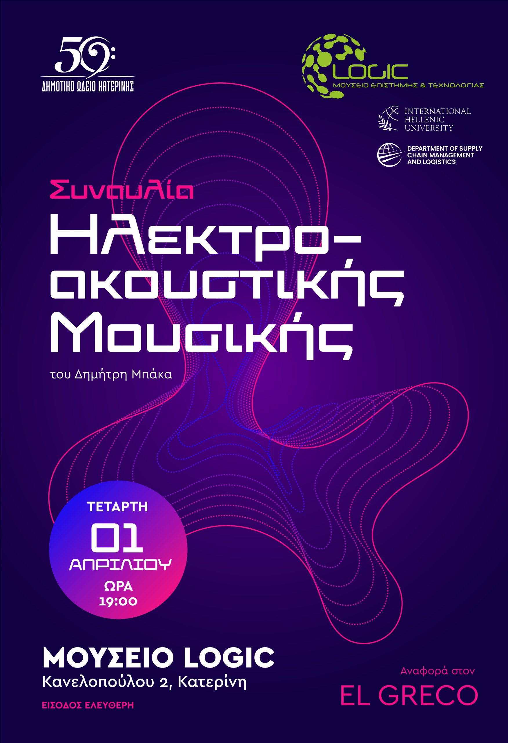 Συναυλία Ηλεκτροακουστικής Μουσικής του Δημήτρη Μπάκα "Αναφορά στον Ελ Γκρέκο" - Συνδιοργάνωση: Δημοτικό Ωδείο Κατερίνης, Μουσείο Logic Επιστήμης και Τεχνολογίας Διεθνές Πανεπιστήμιο Ελλάδος, Τμήμα Διοίκησης Εφοδιαστικής Αλυσίδας - 1 Απριλίου