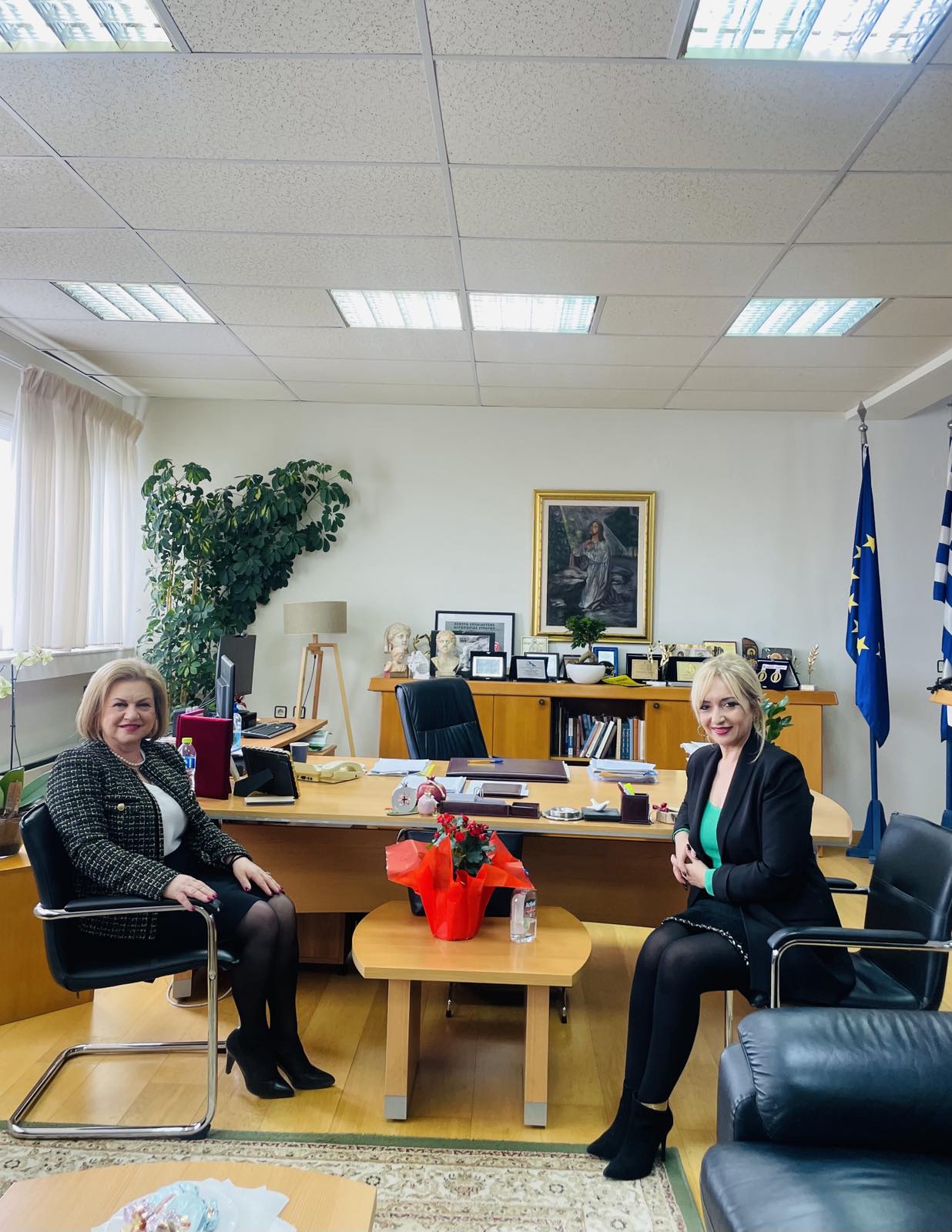 Η κ. Μίχου έγινε δεκτή από την κ. Μαυρίδου, στο γραφείο της Περιφερειακής Ενότητας Πιερίας, την Πέμπτη 6 Απριλίου 2023, όπου η κ. Αντιπεριφερειάρχης παρουσίασε τις δράσεις και τα έργα ανάπτυξης που υλοποιούνται στο Νομό Πιερίας, καθώς και τον προγραμματισμό των επόμενων προτεραιοτήτων με έμφαση στην ώθηση για την αναπτυξιακή διαδικασία και τα αναγκαία κίνητρα, αλλά και την περαιτέρω ανάπτυξη του τουριστικού προϊόντος καθόλη τη διάρκεια του χρόνου, ως και τα σημαντικά θέματα του αγροτικού τομέα.