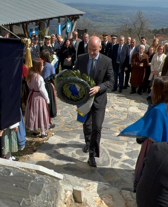 Μετά το πέρας της Θείας Λειτουργίας στον Ιστορικό Ιερό Ναό της Αγίας Παρασκευής Άνω Μηλιάς και την Επίσημη Δοξολογία, ο κ. Μπαραλιάκος κατέθεσε στεφάνι στα ερείπια του Πύργου των Λαζαίων.