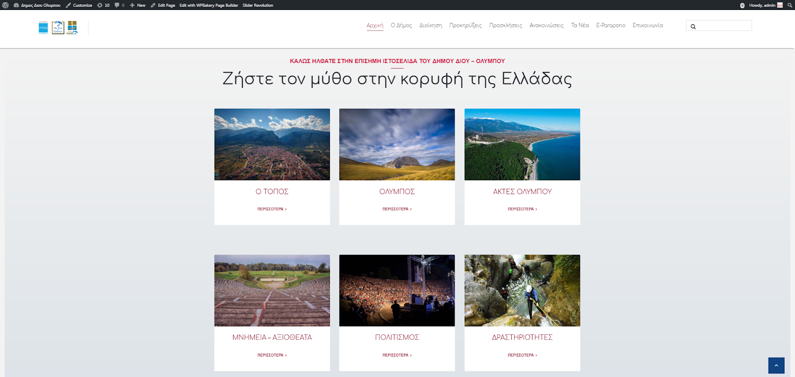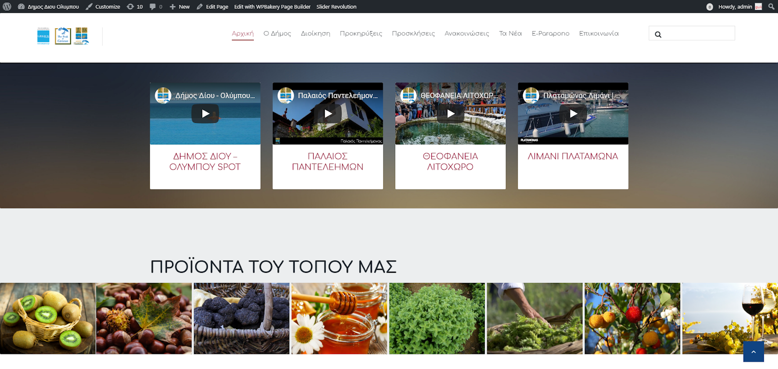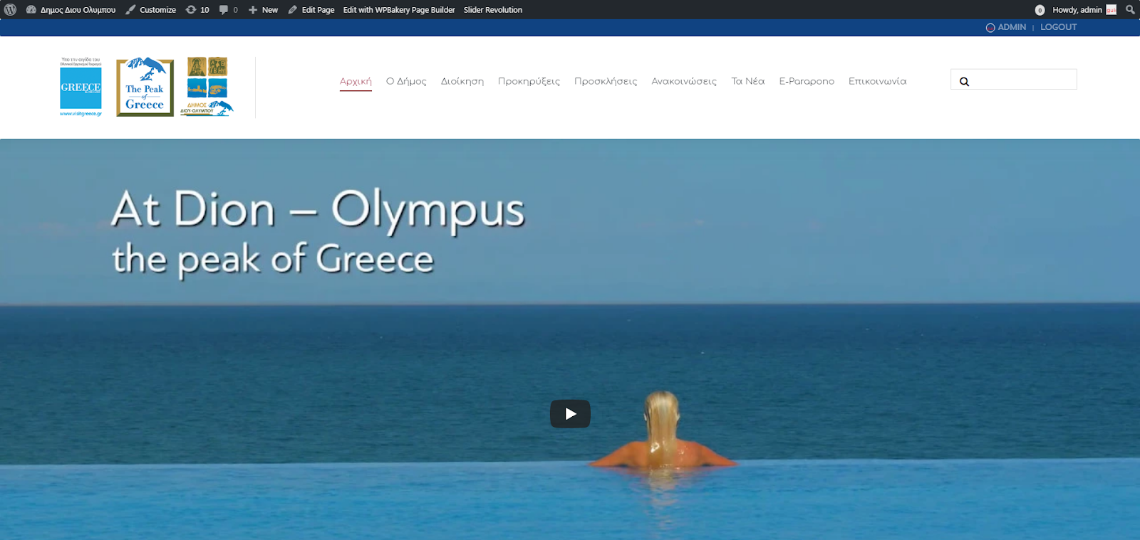 Πρόκειται για μία υψηλής αισθητικής και λειτουργική ιστοσελίδα, η οποία ενώνει τα δύο προηγούμενα site του Δήμου, “dion-olympos.gr” και “visitdionolympus.gr”με πλήρες περιεχόμενο και σύγχρονη δομή. Οι εργασίες ένωσης των δυο siteολοκληρώνονται στις επόμενες ημέρες.