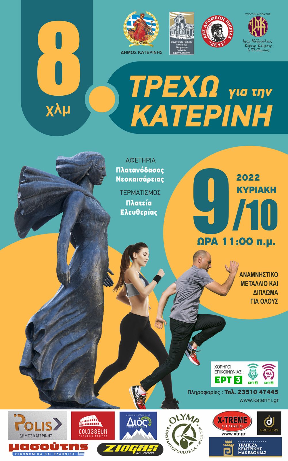 Όπως είναι γνωστό, ως ημερομηνία διεξαγωγής του αγώνα ορίζεται η Κυριακή 09 Οκτωβρίου 2022 και ώρα 11:00 π.μ., ενώ η διοργάνωση εντάσσεται στο επίσημο πρόγραμμα εορτασμού των εκδηλώσεων απελευθέρωσης της πόλης. Με διοργανωτές τον Δήμο Κατερίνης - Οργανισμό Παιδείας, Πολιτισμού, Αθλητισμού & Πρόνοιας, τον Αθλητικό Πολιτιστικό Σύλλογο Δρομέων Πιερίας «ΖΕΥΣ», υπό την αιγίδα της Ιεράς Μητροπόλεως Κίτρους, Κατερίνης & Πλαταμώνος καλούμαστε όλοι να γίνουμε μέρος της μεγάλης αθλητικής – πολιτιστικής γιορτής.