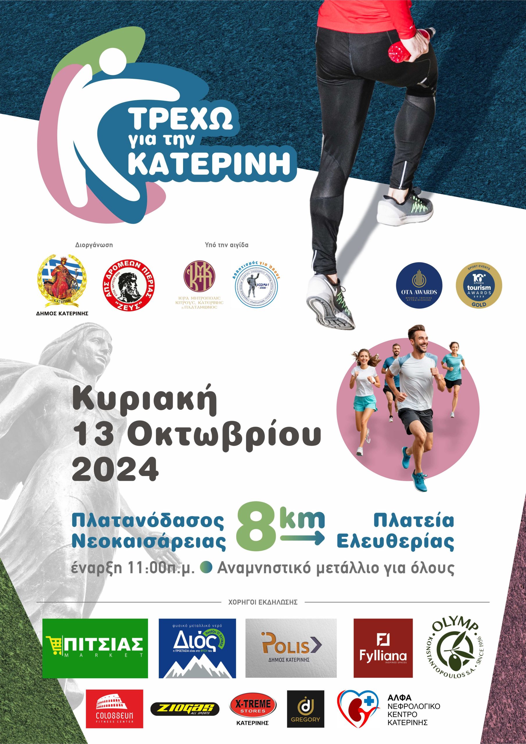 Τη μοναδική εμπειρία της συμμετοχής, σε μία διαδρομή γεμάτη ιστορία, συμβολισμούς και πολλές συγκινήσεις θα ζήσουν όλοι όσοι λάβουν μέρος είτε ως αθλητές, εθελοντές είτε ως θεατές στη φετινή διοργάνωση – θεσμό «ΤΡΕΧΩ ΓΙΑ ΤΗΝ ΚΑΤΕΡΙΝΗ», την Κυριακή 13 Οκτωβρίου με αφετηρία το Πλατανόδασος της Νεοκαισάρειας και τερματισμό την πλατεία Ελευθερίας.