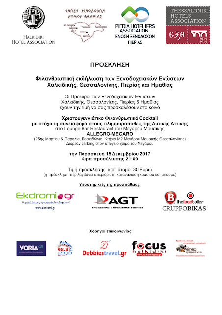Φιλανθρωπική εκδήλωση απο τις Ενώσεις Ξενοδόχων ΠΙΕΡΙΑΣ ΗΜΑΘΙΑΣ ΘΕΣΣΑΛΟΝΙΚΗΣ ΧΑΛΚΙΔΙΚΗΣ