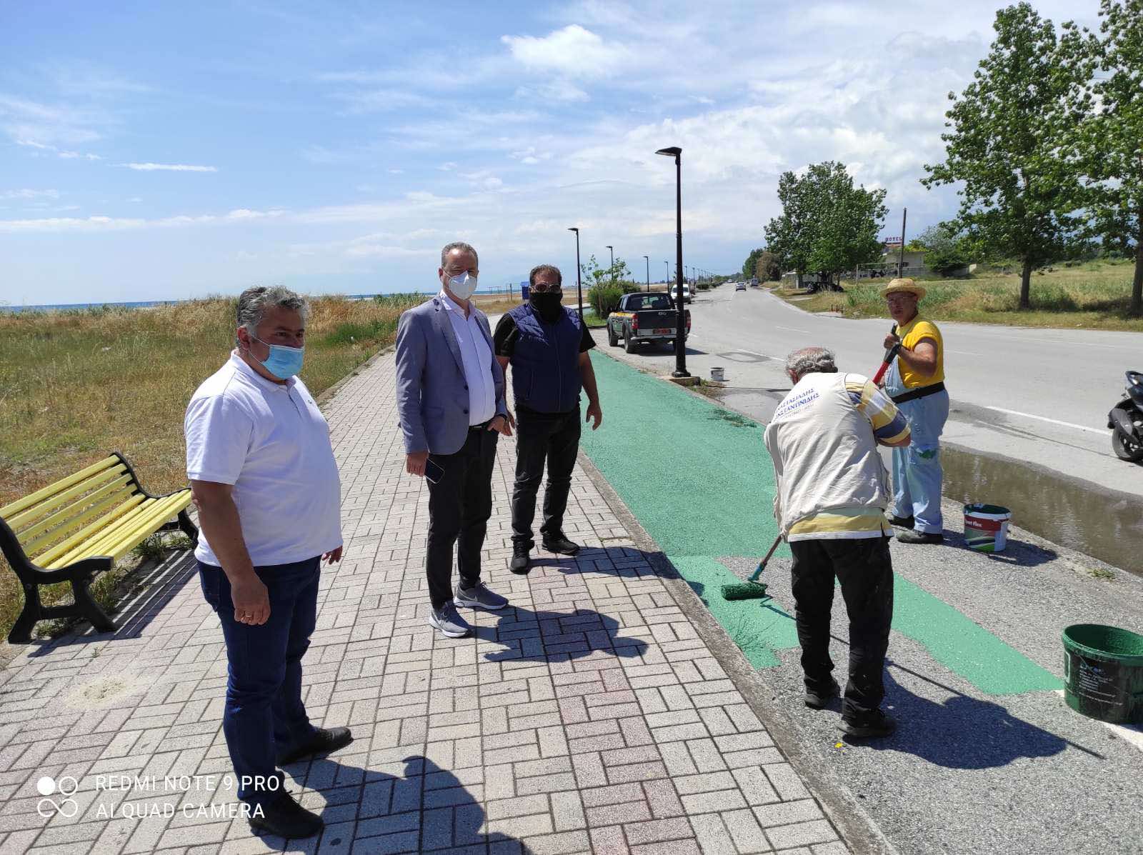 Με ειδικό χρώμα, εύκολα διακριτό, ως πρόσθετο μέτρο, αφενός για τον σεβασμό του δρόμου διέλευσης των ποδηλάτων και αφετέρου για την ποιοτική βελτίωση των χαρακτηριστικών του, βάφεται από συνεργείο της τεχνικής υπηρεσίας, ο ποδηλατόδρομος Παραλίας - Ολυμπιακής Ακτής.