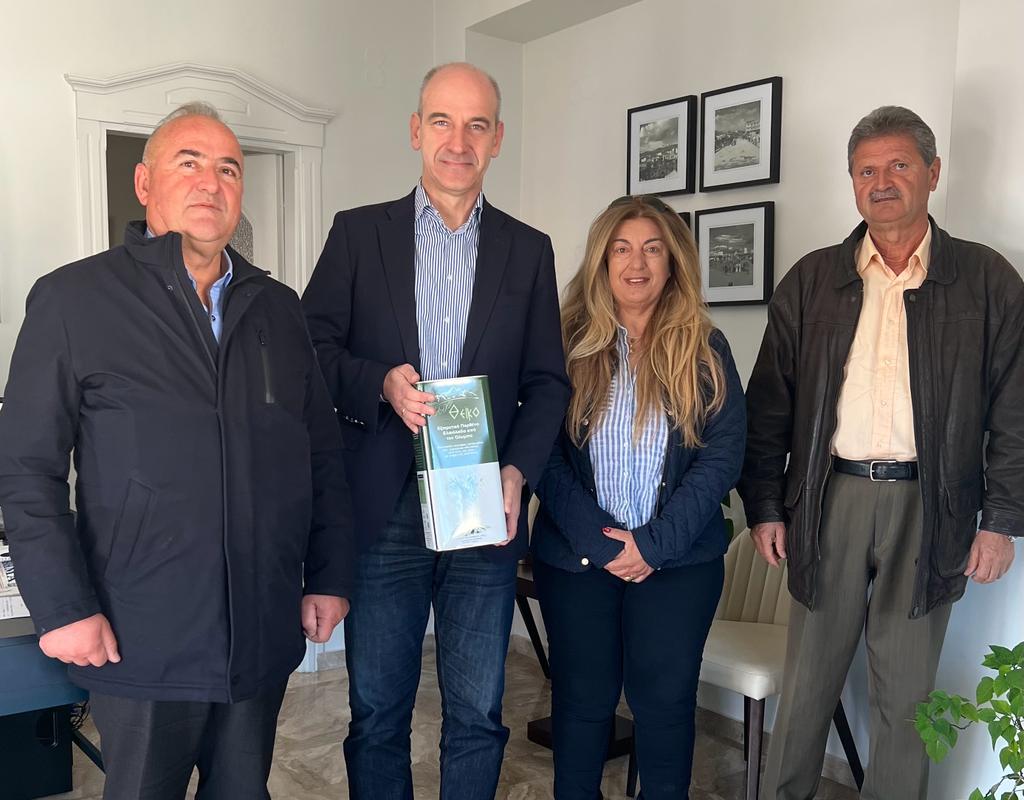 Ένα δείγμα από το μοναδικό φυσικό χυμό ελιάς της Πιερικής γης, το έξτρα παρθένο ελαιόλαδο «ΘΕΪΚΟ ΟΛΥΜΠΟΣ» πρόσφεραν στο Βουλευτή Πιερίας Φώντα Μπαραλιάκο οι εκπρόσωποι της Ομάδας Ελαιοπαραγωγών Θεϊκό "'Όλυμπος" Βασίλης Γκριμούρας, Βούλα Γελαστοπούλου και Βαγγέληζ Γούτζας.