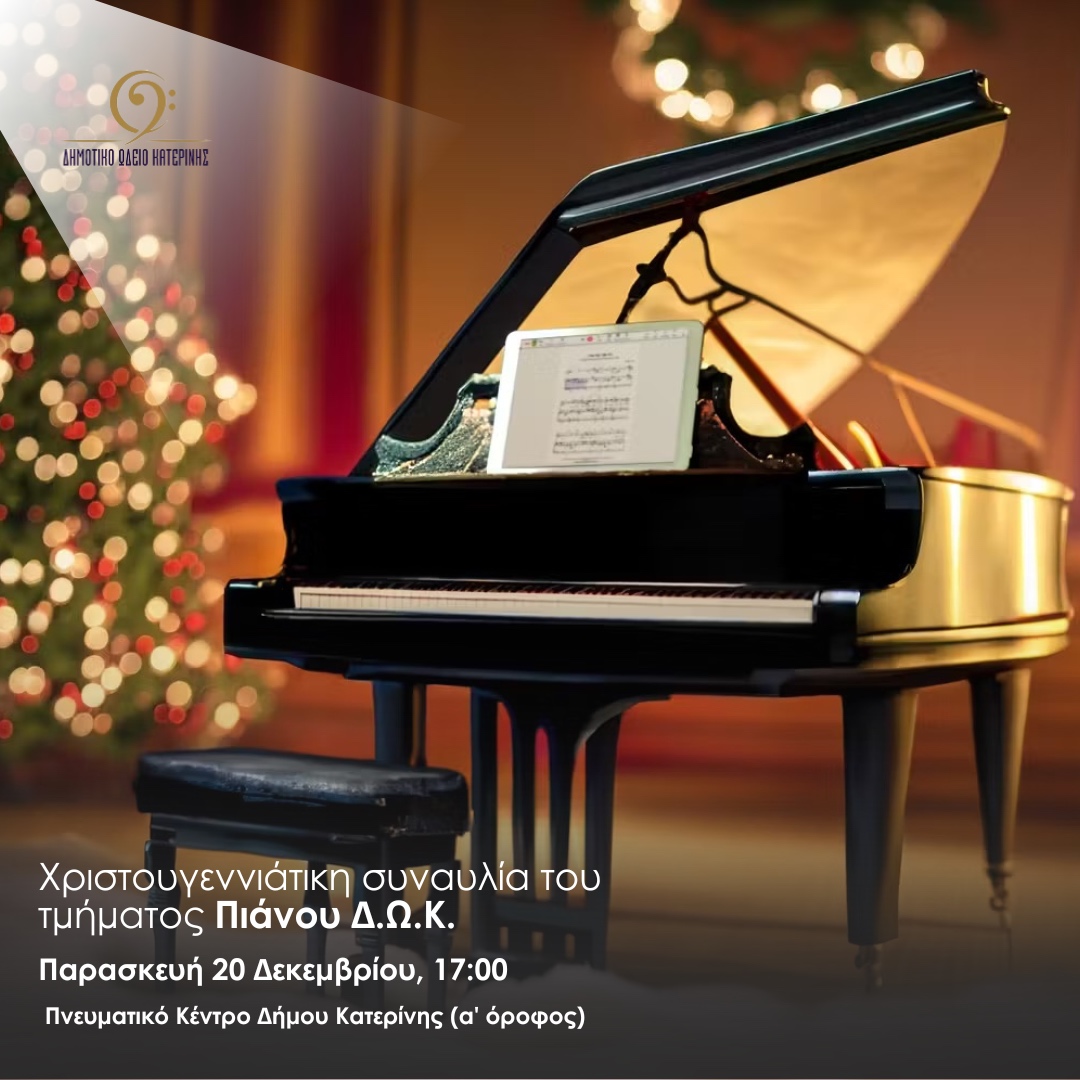 Χριστουγεννιάτικη συναυλία τμήματος πιάνου Δημοτικού Ωδείου Κατερίνης - Την Παρασκευή 20/12 & ώρα 17:00 στο Πνευματικό Κέντρο (αίθουσα ορόφου)