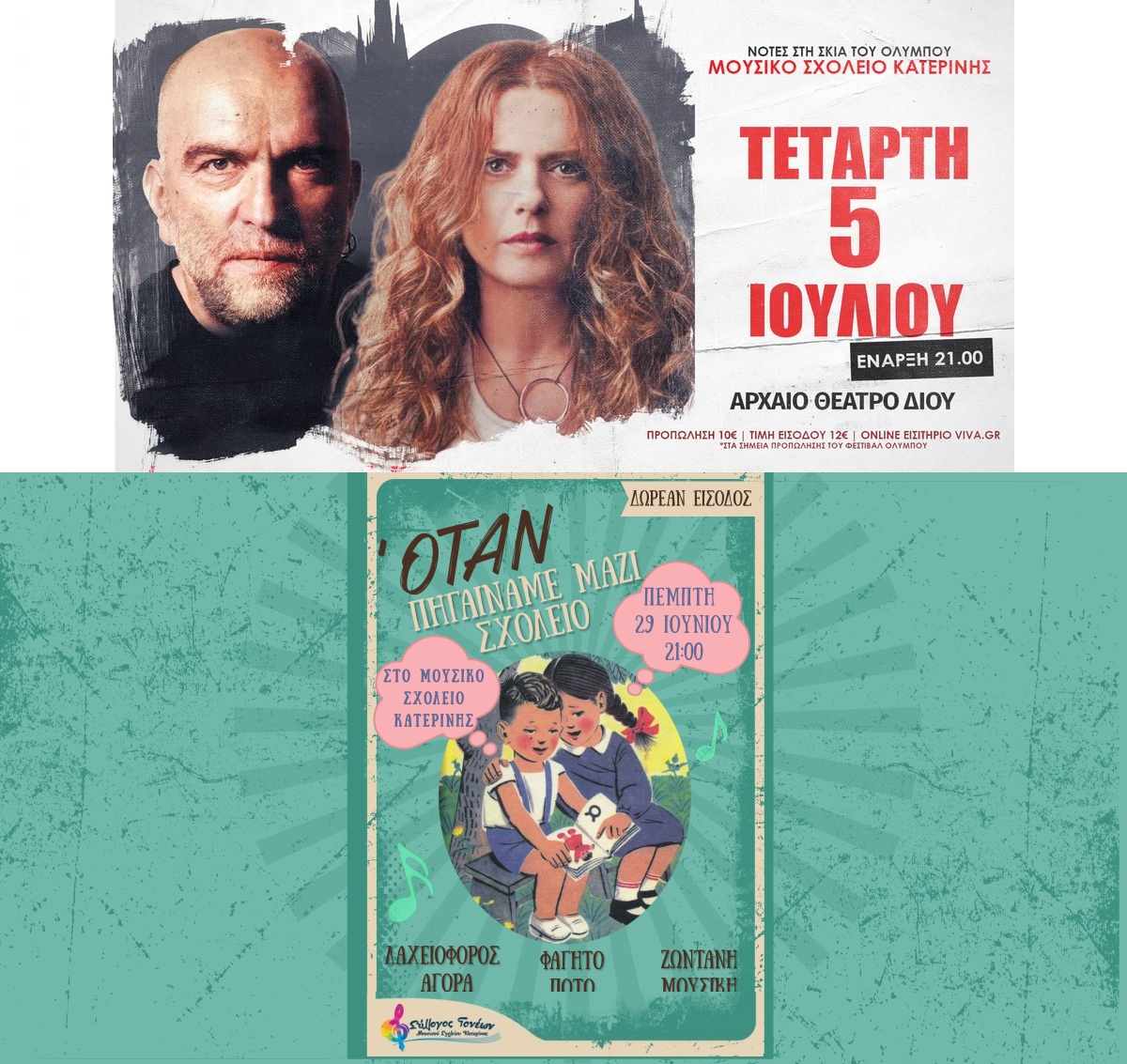 Επίσης σας ενημερώνουμε ότι την Τετάρτη 28 Ιουνίου στις 12:30 στο Μουσικό Σχολείο Κατερίνης θα πραγματοποιηθεί συνέντευξη τύπου αναφορικά με τη συμμετοχή του Μουσικού Σχολείου στο Φεστιβάλ Ολύμπου την Τετάρτη 5 Ιουλίου στο Αρχαίο Θέατρο του Δίου, σε μια μεγάλη συναυλία μαζί με την Ελένη Τσαλιγοπούλου και τον Μπάμπη Στόκα