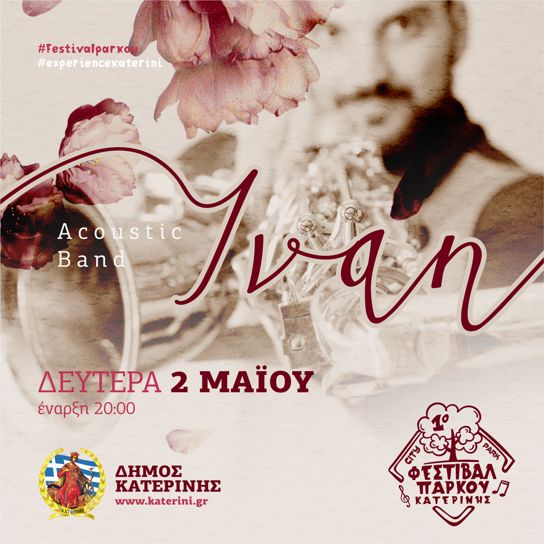 Ένας μοναδικός και πολυτάλαντος καλλιτέχνης, ο Ιβάν, μαζί με την μπάντα του ανεβαίνουν στην κεντρική σκηνή του Φεστιβάλ Πάρκου Κατερίνης για να «μαγέψουν» το κοινό με το μουσικό τους ρεπερτόριο. Με την ποιότητα της τέχνης τους, ο Ιβάν και η μπάντα του θα παρουσιάσουν μοντέρνα ποπ και διαχρονικά κλασικά τζαζ κομμάτια.