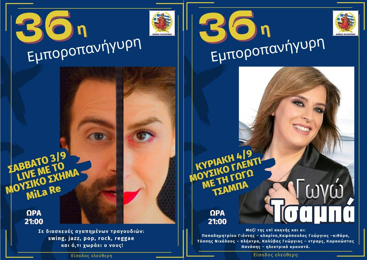 36η Εμποροπανήγυρη Δ. Κατερίνης: Μουσικό Γλέντι με την Γωγώ Τσαμπά την Κυριακή 04/09 & LIVE με τους MiLa Re αύριο Σάββατο