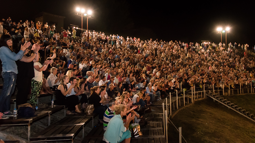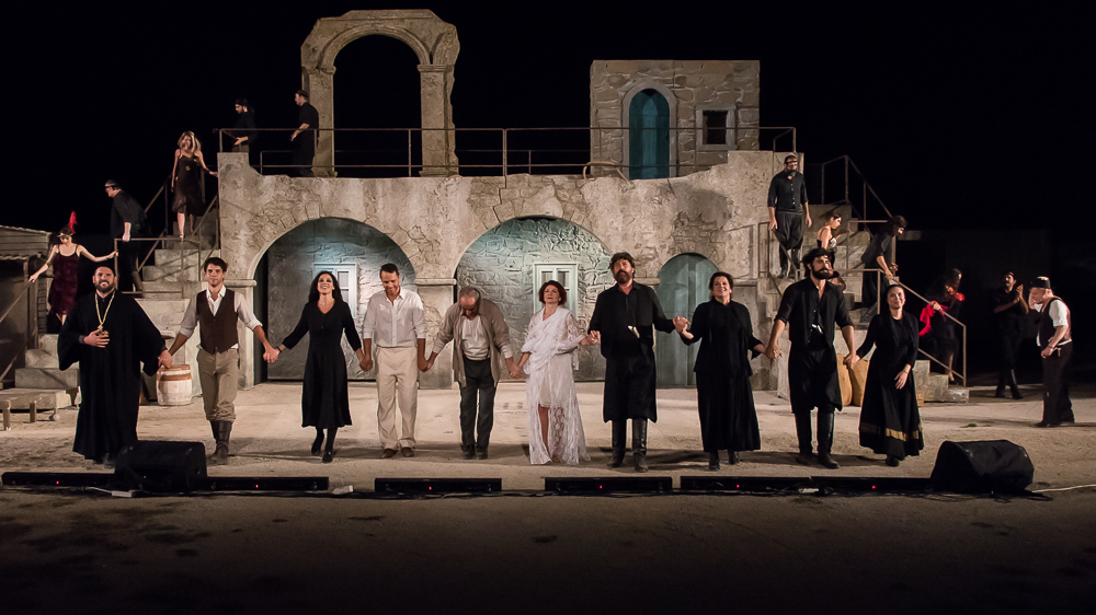 Όταν η αυλαία έπεσε, οι ηθοποιοί υποκλίθηκαν και οι θεατές επικρότησαν με το χειροκρότημα τους, η δήλωση του πρωταγωνιστή-ηθοποιού Γρηγόρη Βαλτινού που ενσάρκωσε επί σκηνής τον Αλέξη Ζορμπά, αποτυπώνει την εικόνα της βραδιάς: «Βρισκόμαστε εδώ στα ριζά του Ολύμπου και νοιώθουμε ιδιαίτερη τιμή που παρουσιάσαμε τον Ζορμπά στην πατρίδα του. Περιοδεύσαμε σε πολλές περιοχές της Ελλάδας, αλλά απόψε η παράσταση ξεχωρίζει. Με ένα τόσο ζεστό κοινό από τα καλύτερα που γνωρίσαμε. Σας ευχαριστούμε πολύ. Προσωπικά και εγώ είμαι συγκινημένος γιατί με τιμήσατε εσείς οι συντοπίτες μου, μιας και εγώ κατάγομαι από την Πιερία και συγκεκριμένα από τον Καταχά. Σας ευχαριστώ για την αγάπη σας, όπως και το Φεστιβάλ Ολύμπου για τη φιλοξενία.»