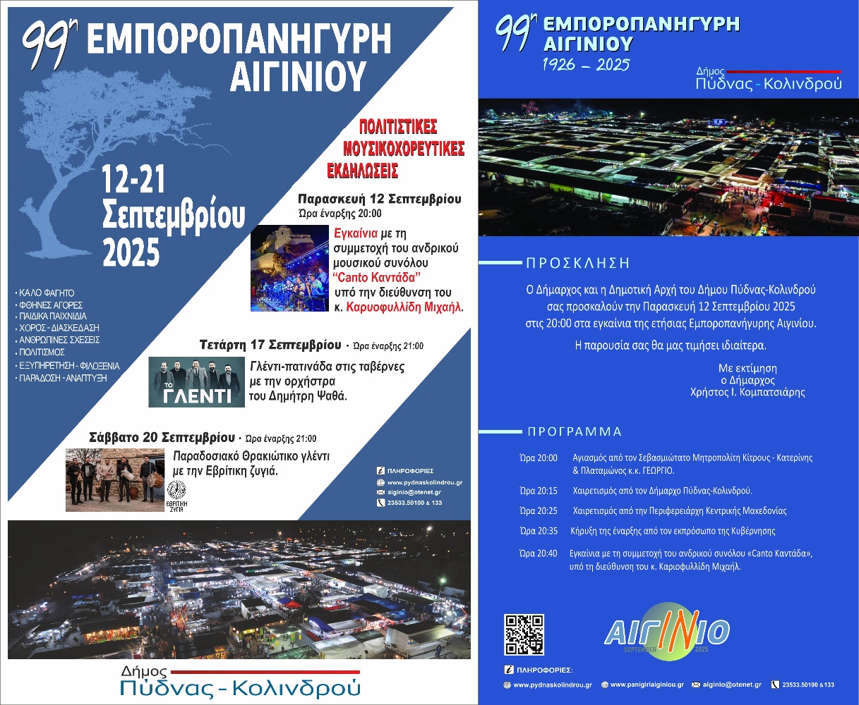 Εμποροπανήγυρης Αιγινίου που ανοίγει τις πύλες της, με τα επίσημα