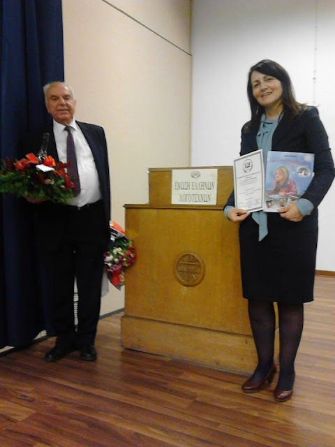 Η συγκίνησή μου και η χαρά μου είναι μεγάλη για την τιμητική αυτή διάκριση από το αρχαιότερο ελληνικό λογοτεχνικό σωματείο που μεταξύ των ιδρυτικών του μελών συγκαταλέγονται: ο Κωστής Παλαμάς, ο Γ. Δροσίνης, ο Γ. Βυζιινός, ο Άγγελος Σικελιανός, ο Ζαχαρίας Παπαντωνίου ... και άλλοι σημαντικοί δημιουργοί της ελληνικής λογοτεχνίας. Αφιερώνω το βραβείο μου αυτό σε όλα τα παιδιά του Τμήματος Προσχολικής Αγωγής Δήμου Δίου Ολύμπου που όλα αυτά τα χρόνια χρωμάτισαν την ψυχή μου με τα πινέλα της έμπνευσης και της δημιουργίας και ήταν τα πρώτα που ζωντάνεψαν τις ιστορίες του βιβλίου επάνω στη σκηνή!!!