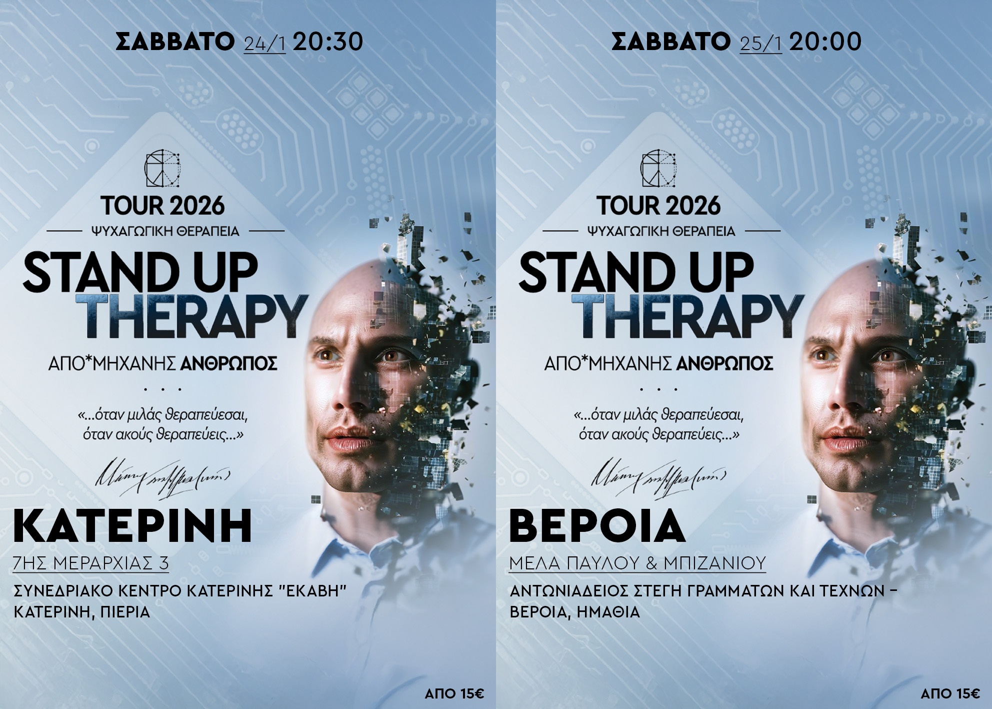 Free cookie consent management tool by TermsFeed Stand Up Therapy με τον διακεκριμένο ψυχολόγο Μάνο Χατζημαλωνά σε Κατερίνη και Βέροια – OlymposPress.gr
